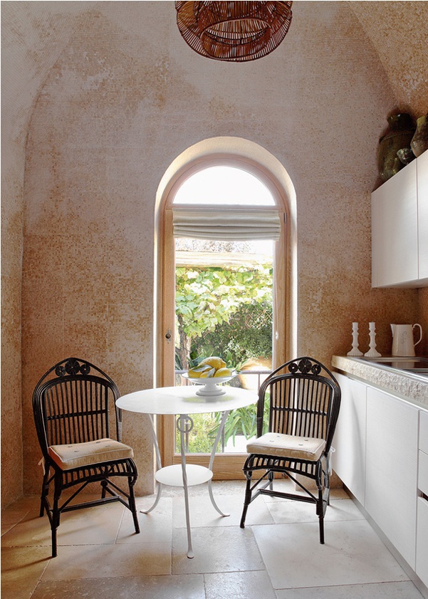 I have many places I want to go to, like many but, Capri in Italy is by far on the top of my list. At this point it has moved up to be the tittle of my list, really! Hubby take note! I have the thought of me walking down one of its many hilly stoned walkways down to the beach with the air blowing my hair while my feet warm up at the touch of the hot ground. I may even fall down trying to take in the amazing view. Now, this breath taking beach home in Capri designed by the one and only Jean-Louis Deniot makes my wishes go one step further and of all of a sudden I start thinking how about a vacation home there, even if it's in a million year? One can dream! Had I not read that Jean-Louis Deniot designed this home I would've thought that it was created by nature itself, especially the outside. Enjoy!